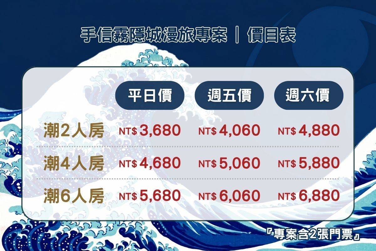 ※本專案僅包含2張成人票,需購買其餘門票請於手信霧隱現場加購。